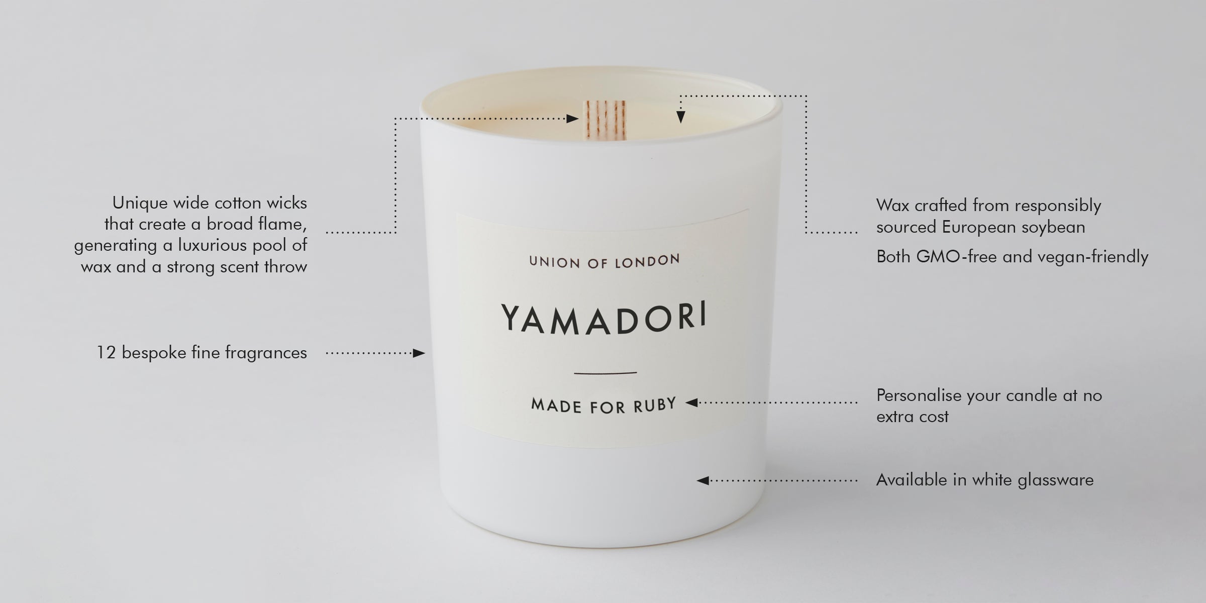 Each of our candles is handcrafted with love, designed to bring a sense of quiet luxury to your space. At the heart of every candle is our unique signature wide cotton wick — creating a broad flame that melts the wax into a rich, fragrant pool. And the best part? We offer complimentary personalisation on every candle.