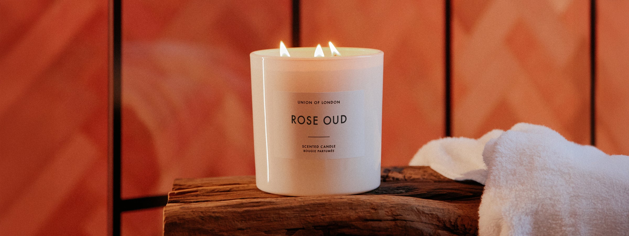Rose Oud ‘Luxurious Floral' Triple Wick White Candle, 730g